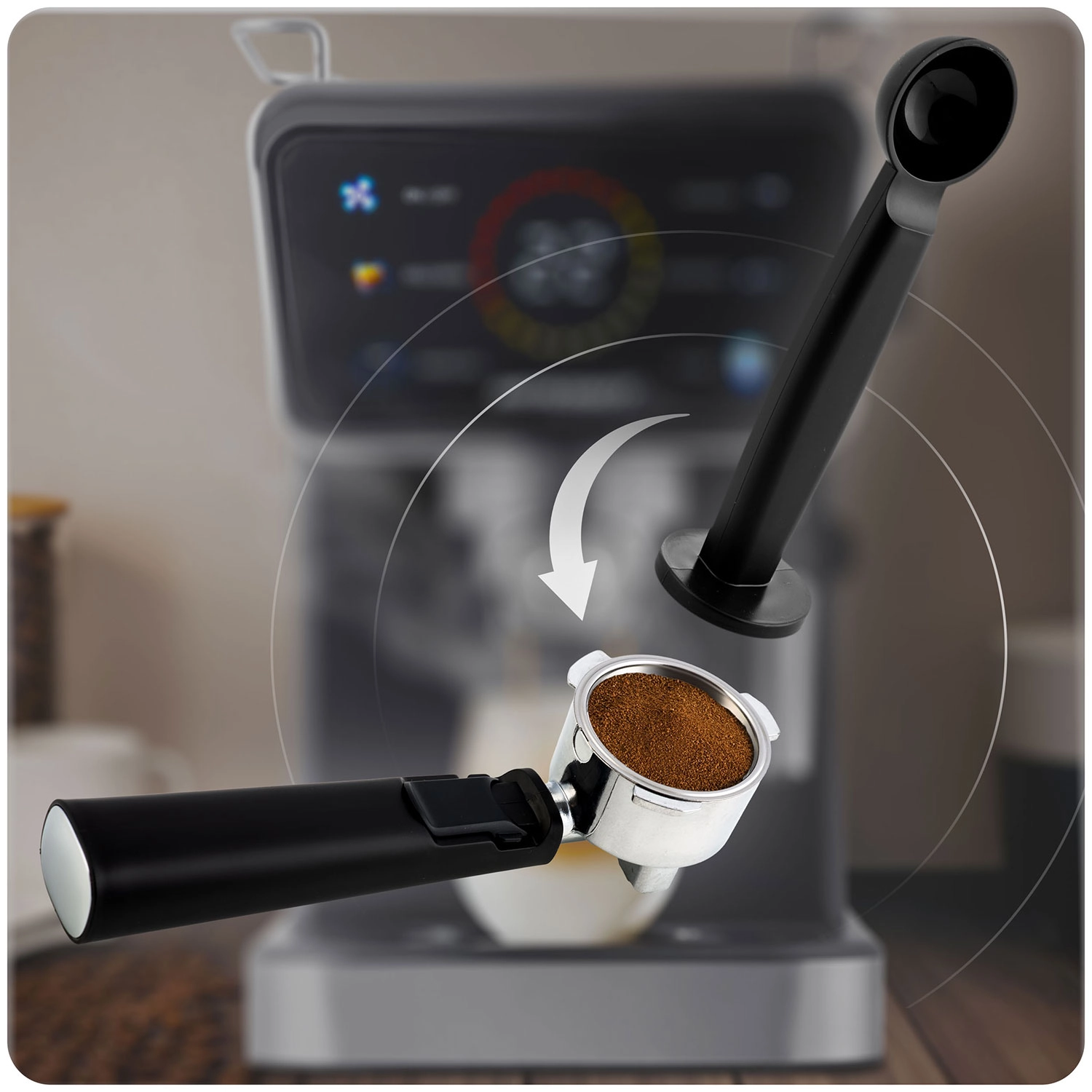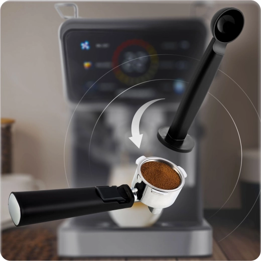 Praktická výbava zahrnuje dva nerezové filtry (single a double), kolébku s dvojitým výdejem, a 2v1 odměrku s tamperem pro přesné dávkování a rovnoměrné upěchování. Vyjímatelná odkapávací miska umožní použití i vyšších sklenic a termohrnků, zatímco 1,5l nádržka na vodu se snadno plní a čistí. Tichý chod, kvalitní zpracování a bezpečné protiskluzové nožky umocní každodenní pohodlí.
