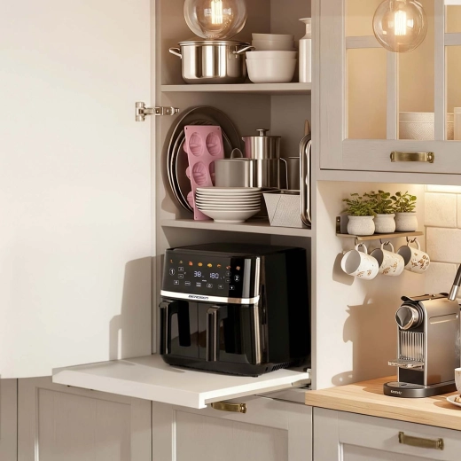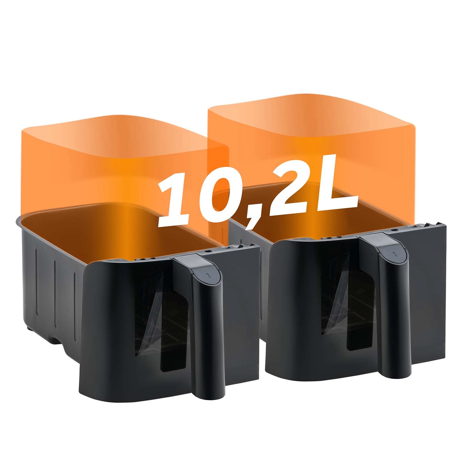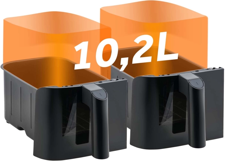 Uvařte hlavní chod i přílohu současně. Dvojice 5,1 l košů s okénky a LED světlem vám dá plnou kontrolu bez otevírání zásuvek – rychleji, čistěji, efektivněji.