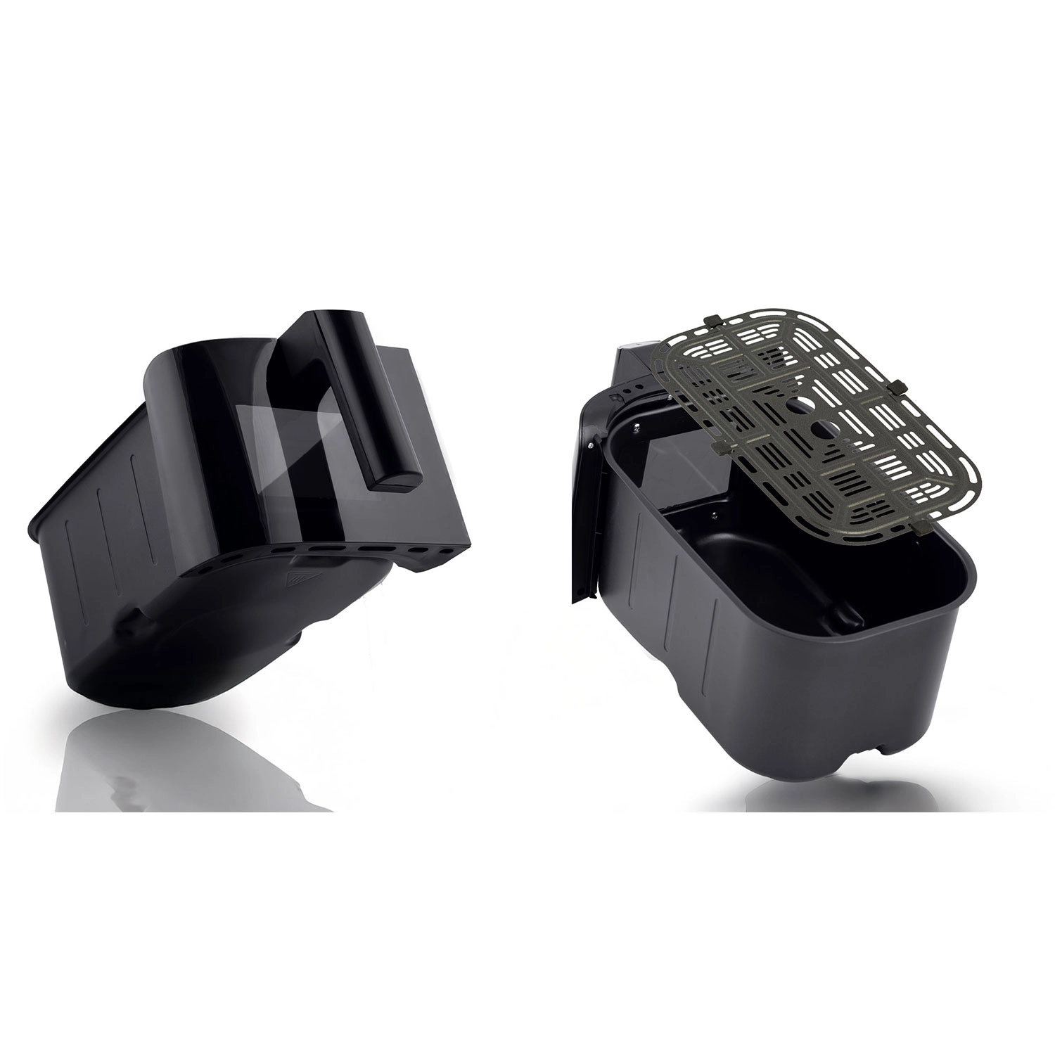 BERDSEN BD-657 spojuje výkon, kapacitu a chytré funkce do elegantního černého provedení. Dvě nezávislé zóny umožní připravit současně odlišná jídla – třeba hranolky a kuře – se samostatným nastavením času a teploty až do 200 °C. Nelepivý PTFE povrch a díly vhodné do myčky zaručí snadné čištění bez námahy.