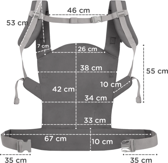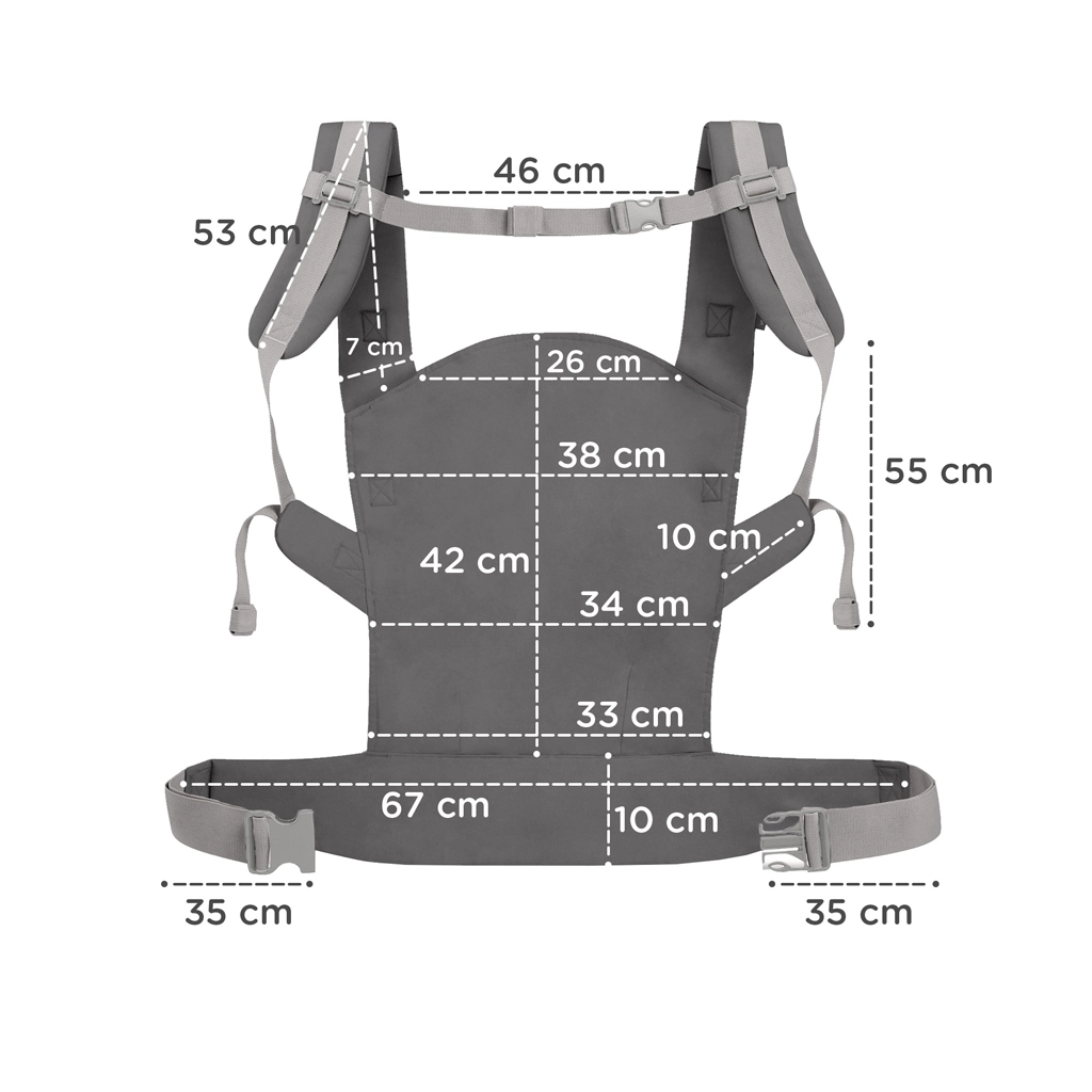 Inovační panel s plynulým nastavením výšky a šířky sedu roste s dítětem. Vhodné od 3 měsíců až do 20 kg pro nošení na břiše i na zádech.