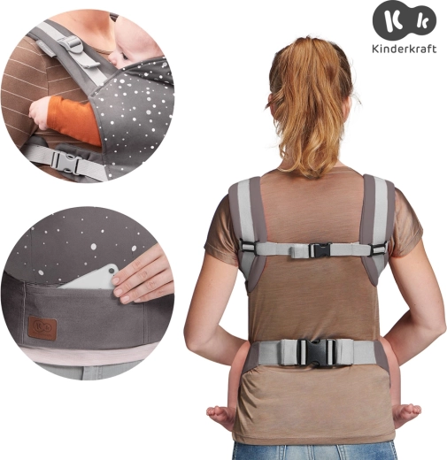 Nosítko Kinderkraft Nino je navrženo s důrazem na bezpečí, ergonomii a komfort pro rodiče i dítě. Inovační panel s plynulým nastavením výšky se přizpůsobí růstu dítěte, zatímco široký a měkký bederní pás spolu s polstrovanými ramenními popruhy zajišťují pohodlné rozložení váhy. Prodyšná 100% bavlna se postará o příjemnou ventilaci i při delším nošení.