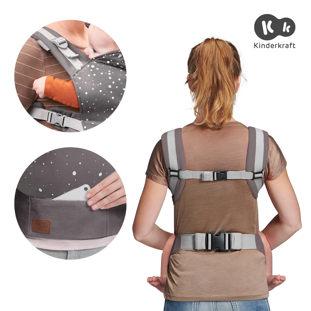 Ergonomické nosítko Kinderkraft Nino ve stylovém provedení Confetti Grey je pohodlné řešení pro nošení dětí od 3 měsíců do 20 kg. Nabízí dvě pozice nošení (na břiše a na zádech), plynulé nastavení panelu a široký bederní pás pro rovnoměrné rozložení hmotnosti. Je vyrobeno ze 100% bavlny, umožňuje přirozenou poloohu M a má pozitivní hodnocení IHDI pro zdravý vývoj kyčlí.