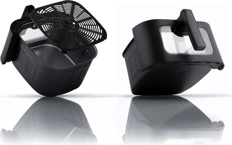 Zařízení zvládne fritovat, péct, grilovat, ohřívat i sušit – nahradí tak tradiční fritézu, troubu, gril i sušičku potravin. K dispozici je 12 přednastavených programů (hranolky, zelenina, pizza, steaky, kuřecí stehýnka, dezerty a další), nastavení času 1–60 min a teplot 80–200 °C. Díky výkonu 1700 W nahřívá rychle a připraví jídlo úsporně a bez nepořádku.