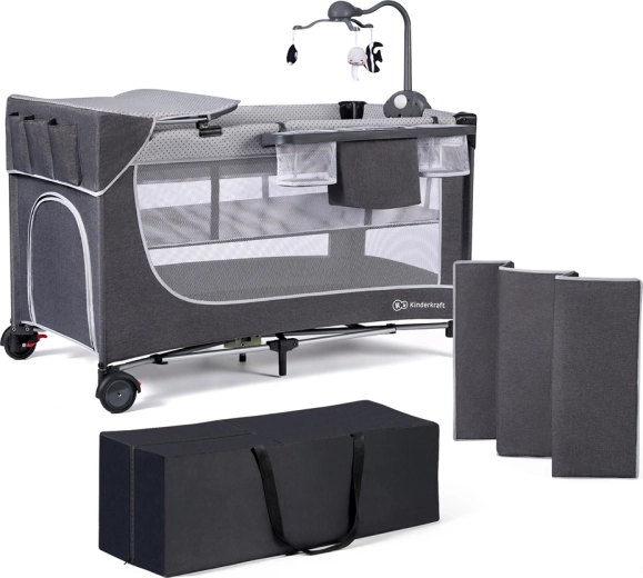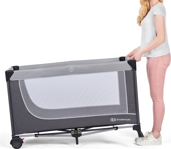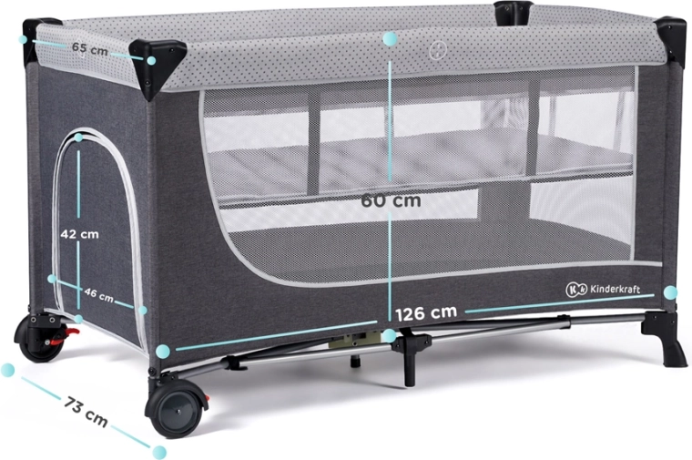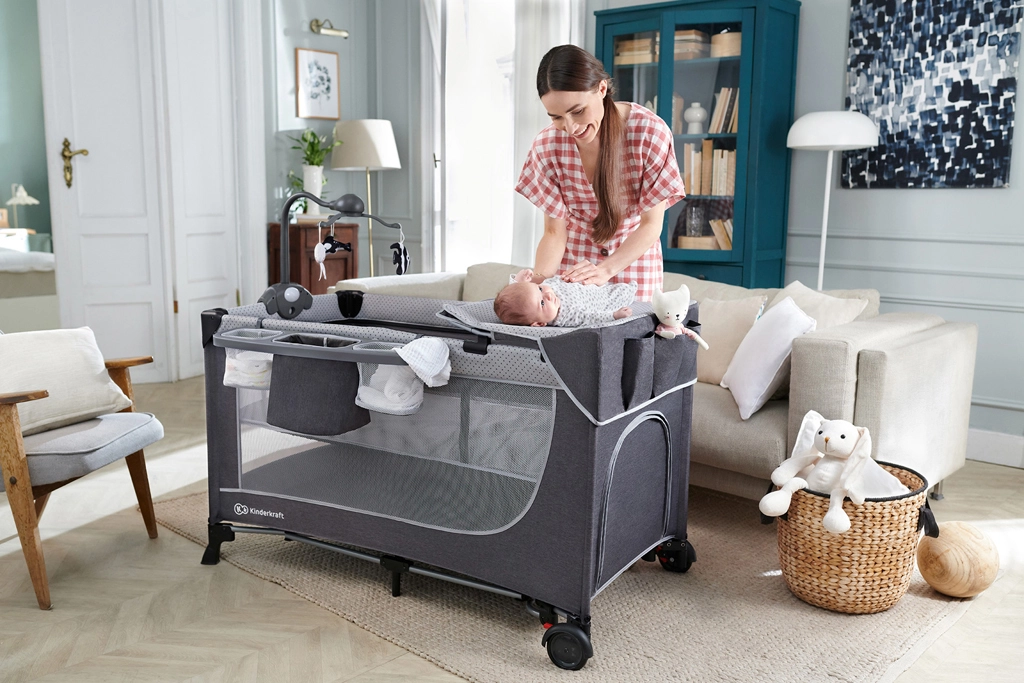 Rodiče ocení rychlé rozložení a složení, kolečka s brzdou pro snadné přemísťování mezi místnostmi a bohaté příslušenství: přebalovací pult, poličku a závěsné organizéry na pleny a kosmetiku. Po složení je postýlka kompaktní a vejde se do přiložené tašky s popruhem pro pohodlné přenášení.