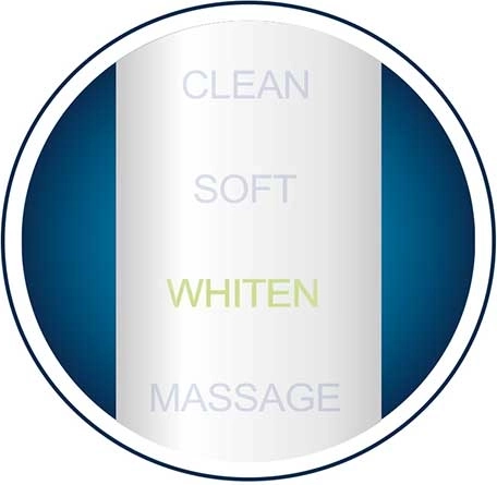 Čištění, Bělení, Jemný a Masáž: zvolte ideální nastavení pro každodenní hygienu, citlivé zuby i leštění skloviny a stimulaci dásní.