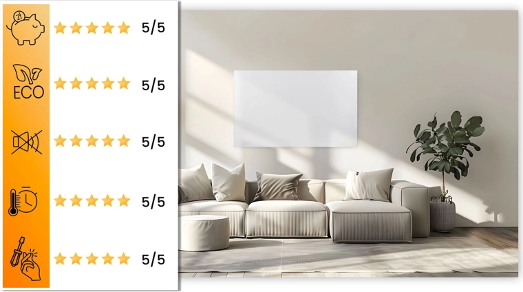 Expresní a bezhlučné vytápění bez ztrát – teplo pocítíte už do 5 minut. Infračervené záření ohřívá přímo osoby a předměty, nikoliv pouze vzduch, což přináší vyšší účinnost a menší tepelné ztráty. Ideální do ložnic, obývacích pokojů i kanceláří, kde oceníte tichý provoz a rychlé dosažení komfortu.