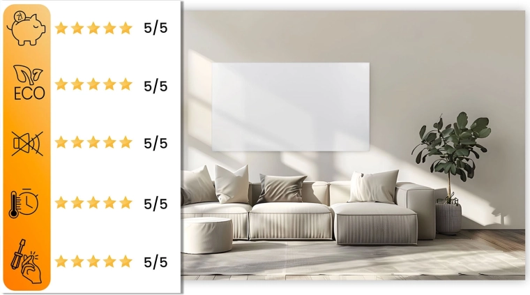 Teplo pocítíte už za 5 minut. Infračervené záření Carbon Crystal ohřívá osoby a předměty, nikoli jen vzduch, což znamená vyšší účinnost, méně víření prachu a žádné vysušování. Ideální do ložnic, obývacích pokojů i kanceláří.