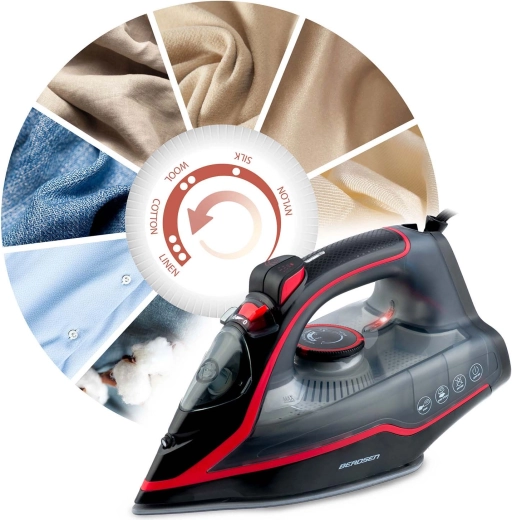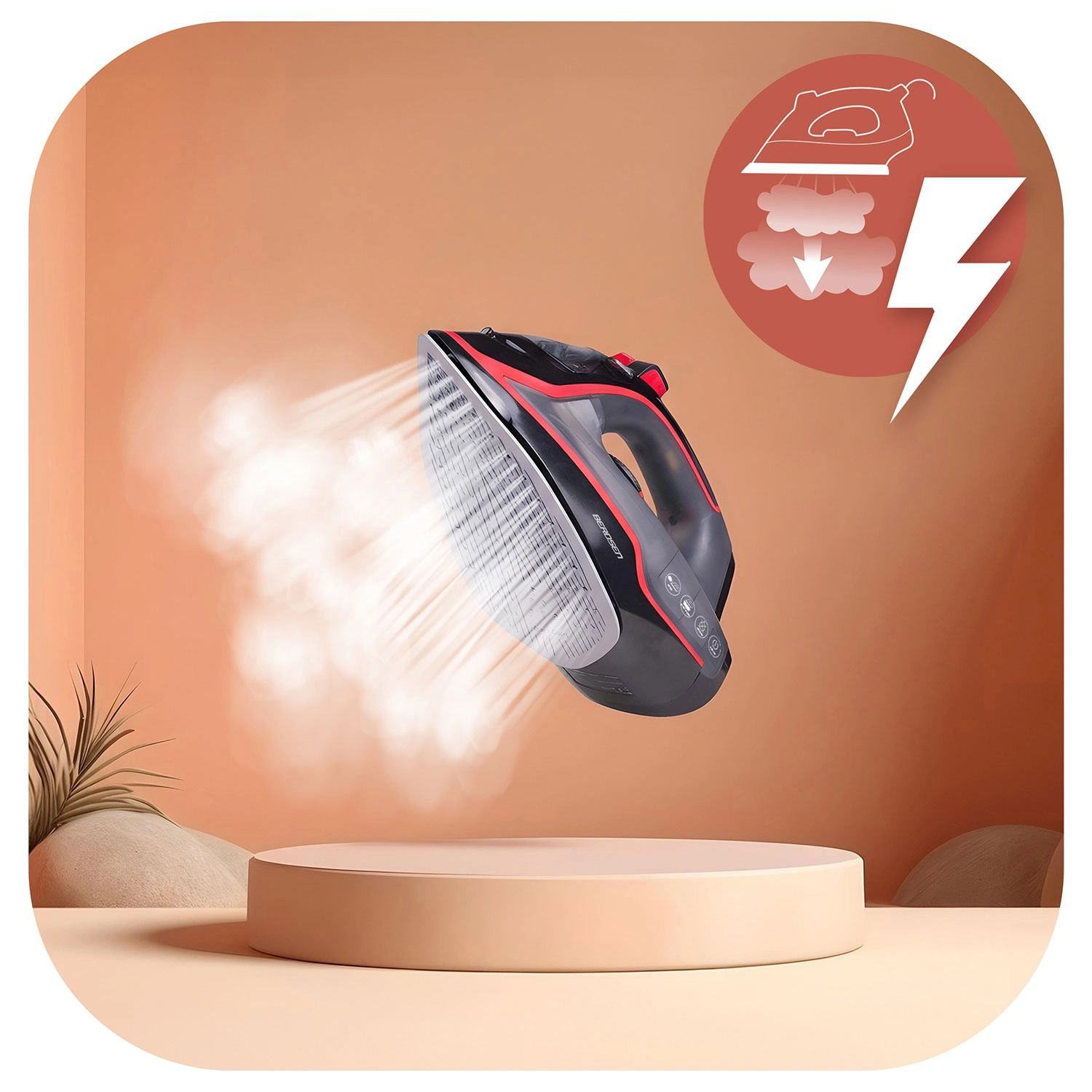 Výkonná parní žehlička Berdsen s příkonem 2600 W vám zajistí rychlé a hladké žehlení bez námahy. Disponuje keramickou žehlící plochou s mikrokanálky pro rovnoměrnou distribuci páry, regulací teploty a páry, funkcí vertikálního napařování, automatickým vypnutím a programem Self Clean pro snadnou údržbu. Praktický rozprašovač, otočný kabel 360° a nádržka na vodu 230 ml zvyšují komfort při každodenním používání.