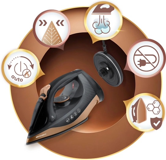 - Silný parní výkon – rychle zkrotí záhyby, méně námahy, lepší výsledky.