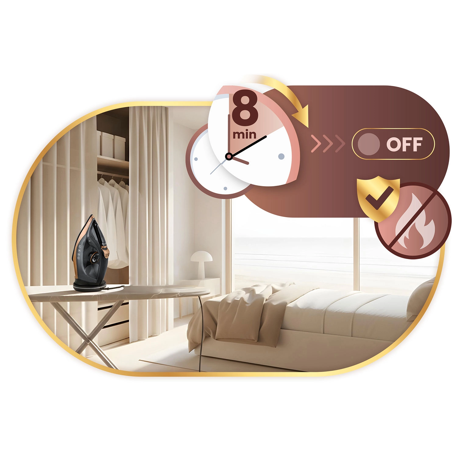 Funkce Auto-Off (Smart&Safe) vypne žehličku po 8 minutách nečinnosti. Self Clean usnadní čištění a prodlouží životnost.