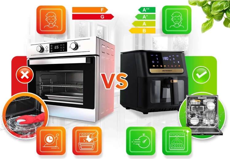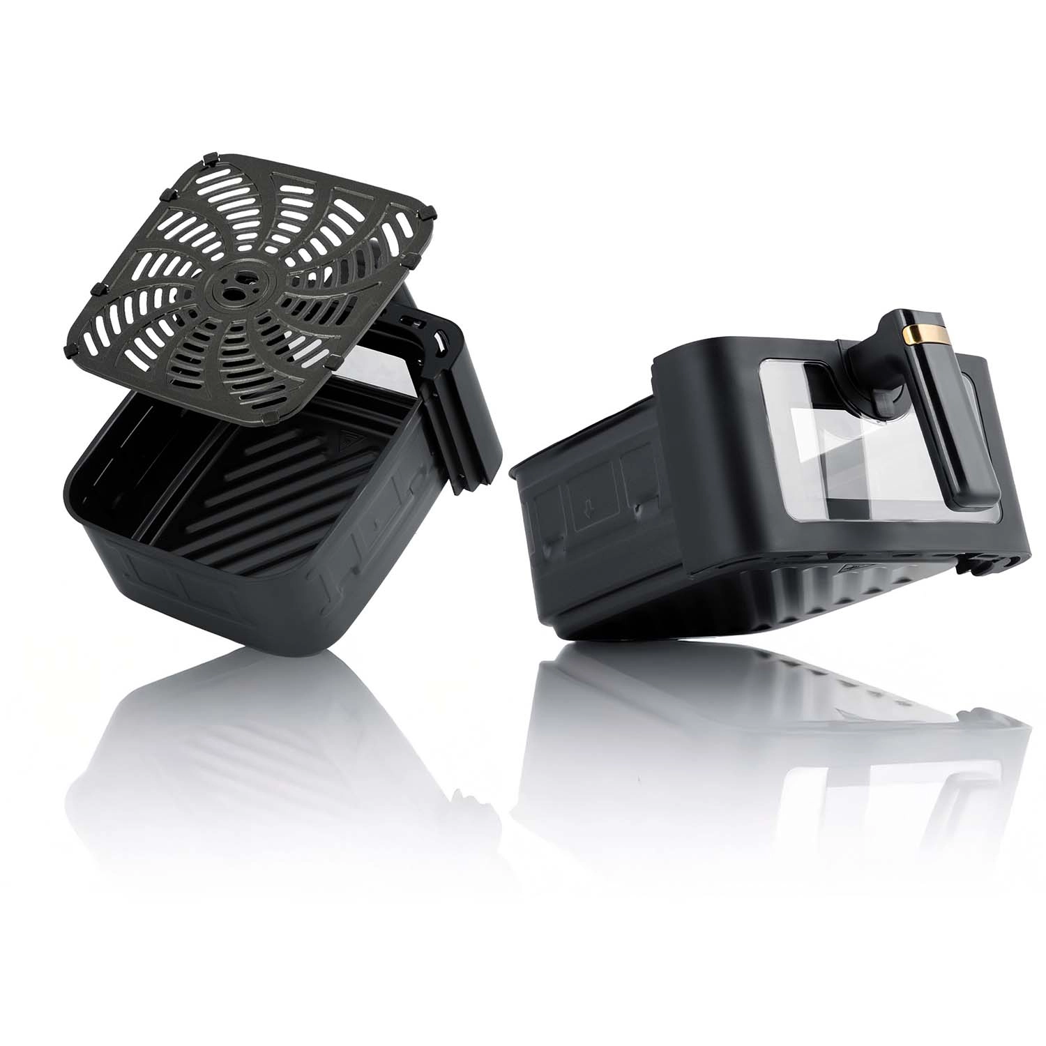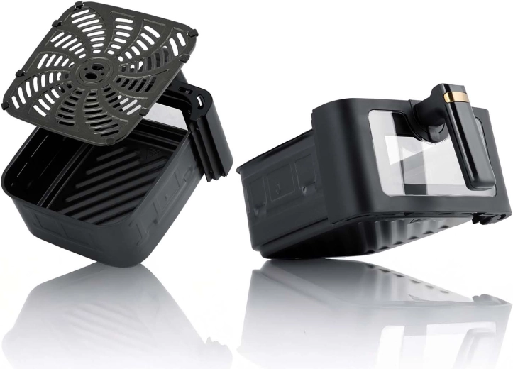 Vyberte si z 8 přednastavených režimů (hranolky, ryby, kuře, krevety, steaky, koláč, pizza, křidélka) nebo si manuálně nastavte čas a teplotu až do 200 °C. Nepřilnavý koš a rošt s PTFE povrchem usnadní čištění, díly lze mýt v myčce. Bezpečný provoz zajišťuje tepelně izolovaná konstrukce, chladné madlo, ochrana proti přehřátí a automatické vypnutí.