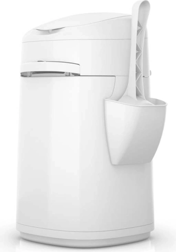 Praktické detaily usnadní používání každý den: odnímatelné víko pro snadné čištění, integrovaný bezpečnostní nůž k oddělení fólie a pohodlná rukojeť pro přenášení. Díky velkému objemu vydrží náplň v domácnosti s jednou kočkou až 2 měsíce. Design koše lze přizpůsobit pomocí 4 stylových potahů (prodávají se samostatně), takže zapadne do každého interiéru.