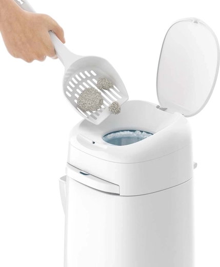 Udržujte kočičí toaletu čistou a domov svěží s košem LitterLocker Design. Díky vícevrstvé fólii s technologií Air-Seal koš uzamkne zápach i bakterie a umožní rychlou, hygienickou a bezdotykovou manipulaci. Má velký objem (až na 2 měsíce pro jednu kočku), praktickou rukojeť pro přenášení, integrovaný nůž pro snadné oddělení fólie a součástí je lopatka s držákem. Moderní vzhled doplníte vyměnitelnými potahy (prodávají se samostatně).