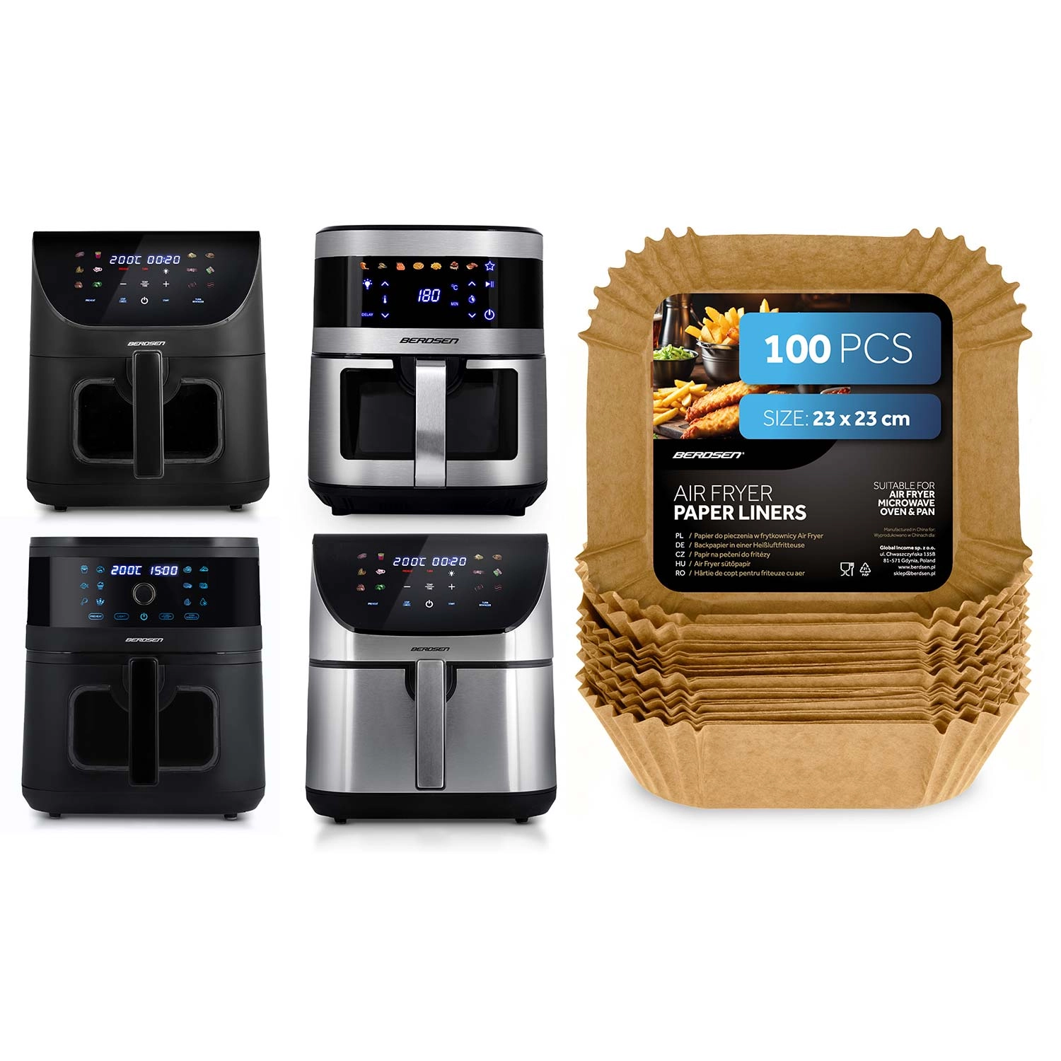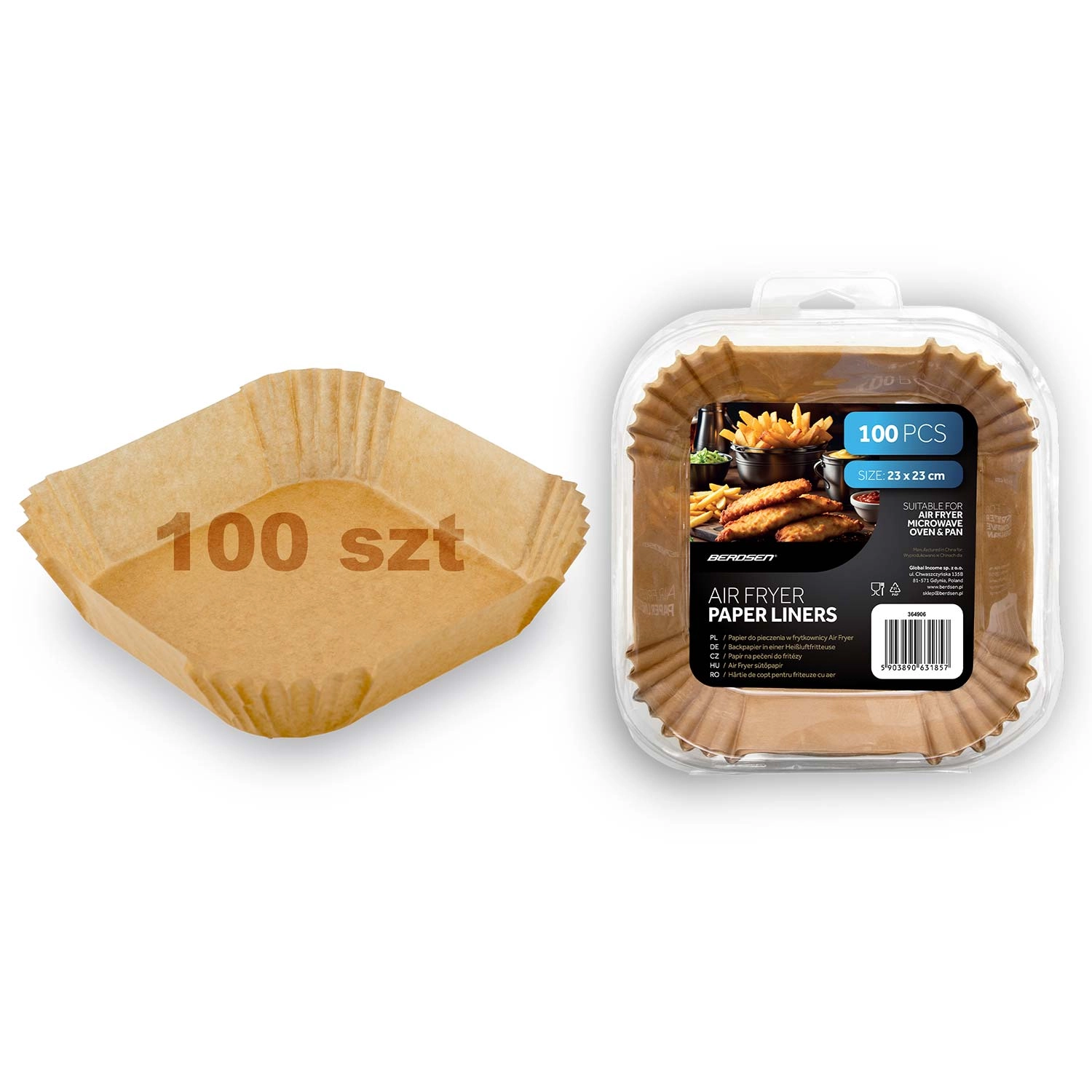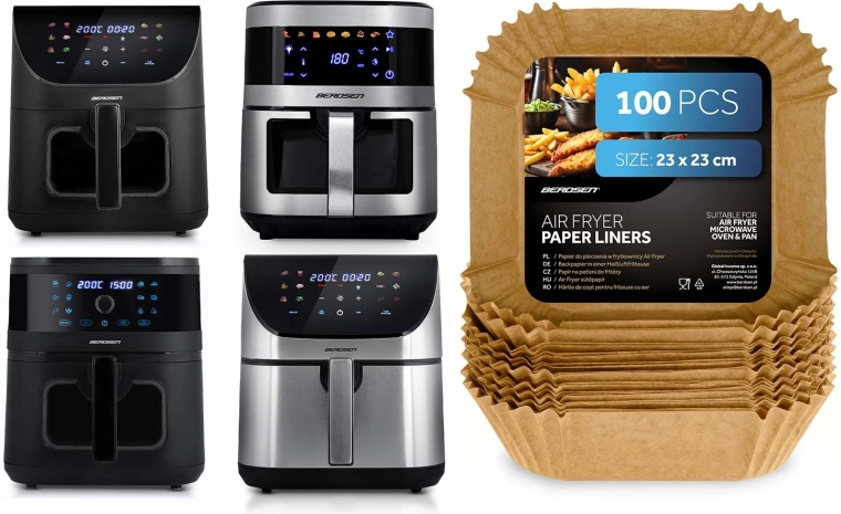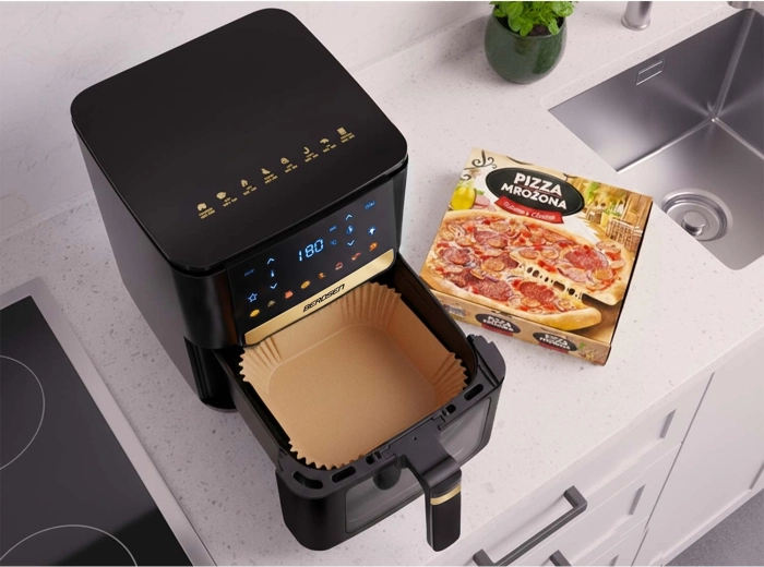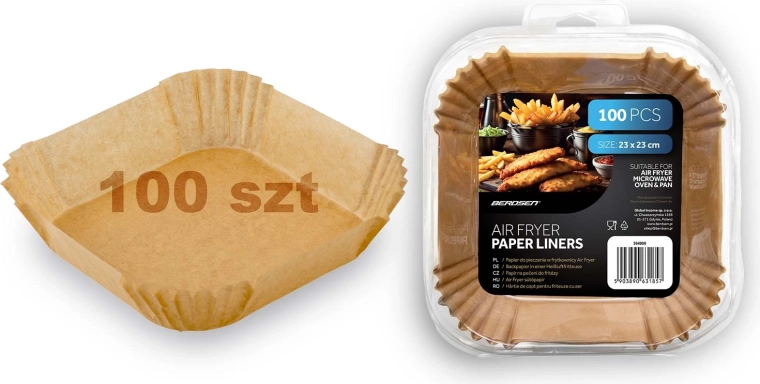 Praktické papírové vložky do fritézy jsou vyrobené z pečicího papíru a tvarované do čtverce s vysokými skládanými okraji (cca 4,5 cm). Díky nim se jídlo méně připéká, lépe se vyndává a po dovaření stačí vložku jednoduše vyhodit. Rozměr 23 × 23 cm sedí k celé řadě košů, pekáčů a je vhodný i do mikrovlnné trouby a pece.
