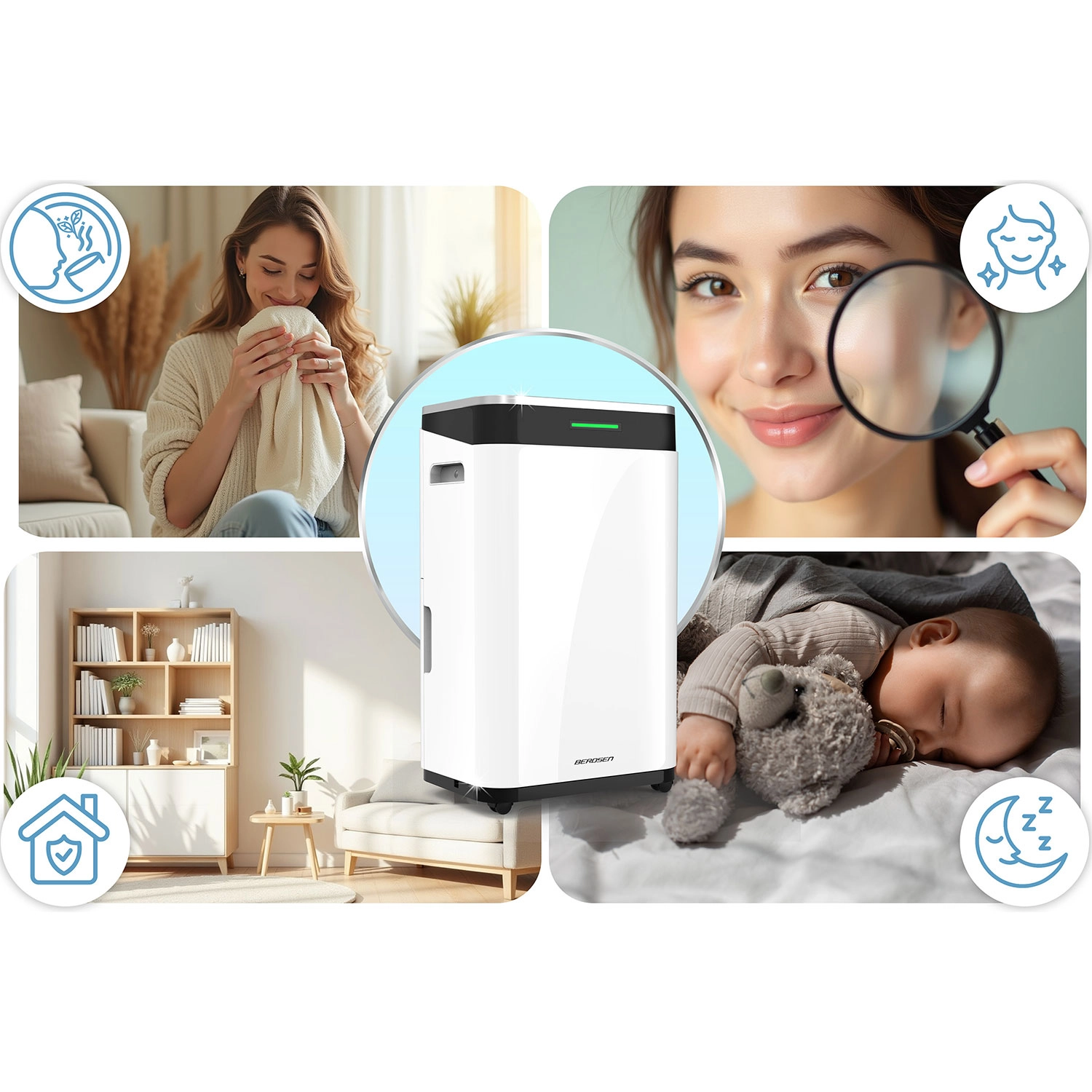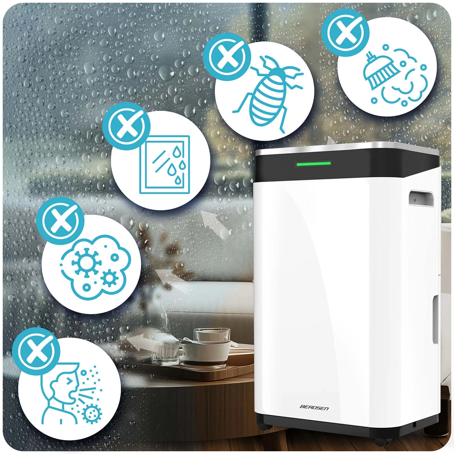 Odvlhčovač Berdsen BD‑533 účinně kondenzuje přebytečnou vlhkost a pomáhá předcházet plísním, zápachu a alergiím. Výborně funguje i při vyšší relativní vlhkosti (RH 80 %). Díky kompresorové technologii a chladivu R290 dosahuje vysoké efektivity s ohledem na životní prostředí.
