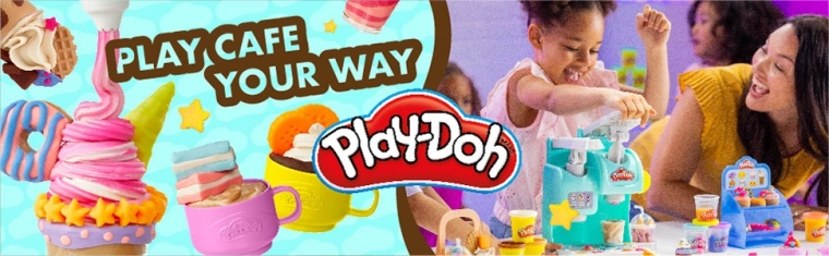 Sada Play-Doh Barevná kavárna promění dětský pokoj v malou kavárnu plnou fantazie. Děti mohou připravovat „kávy“, čaje, frappé nebo koktejly z modelíny, zdobit je šlehačkou a servírovat na průhledný stojánek. Díky bohatému příslušenství a forem na sušenky, muffiny i donuty je zábava zaručena znovu a znovu.