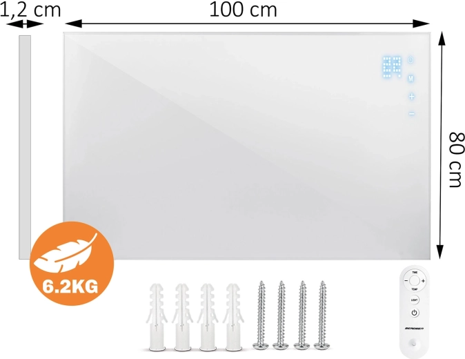- Topný panel 800 W, dálkový ovladač, příslušenství pro montáž na stěnu, návod (PL)