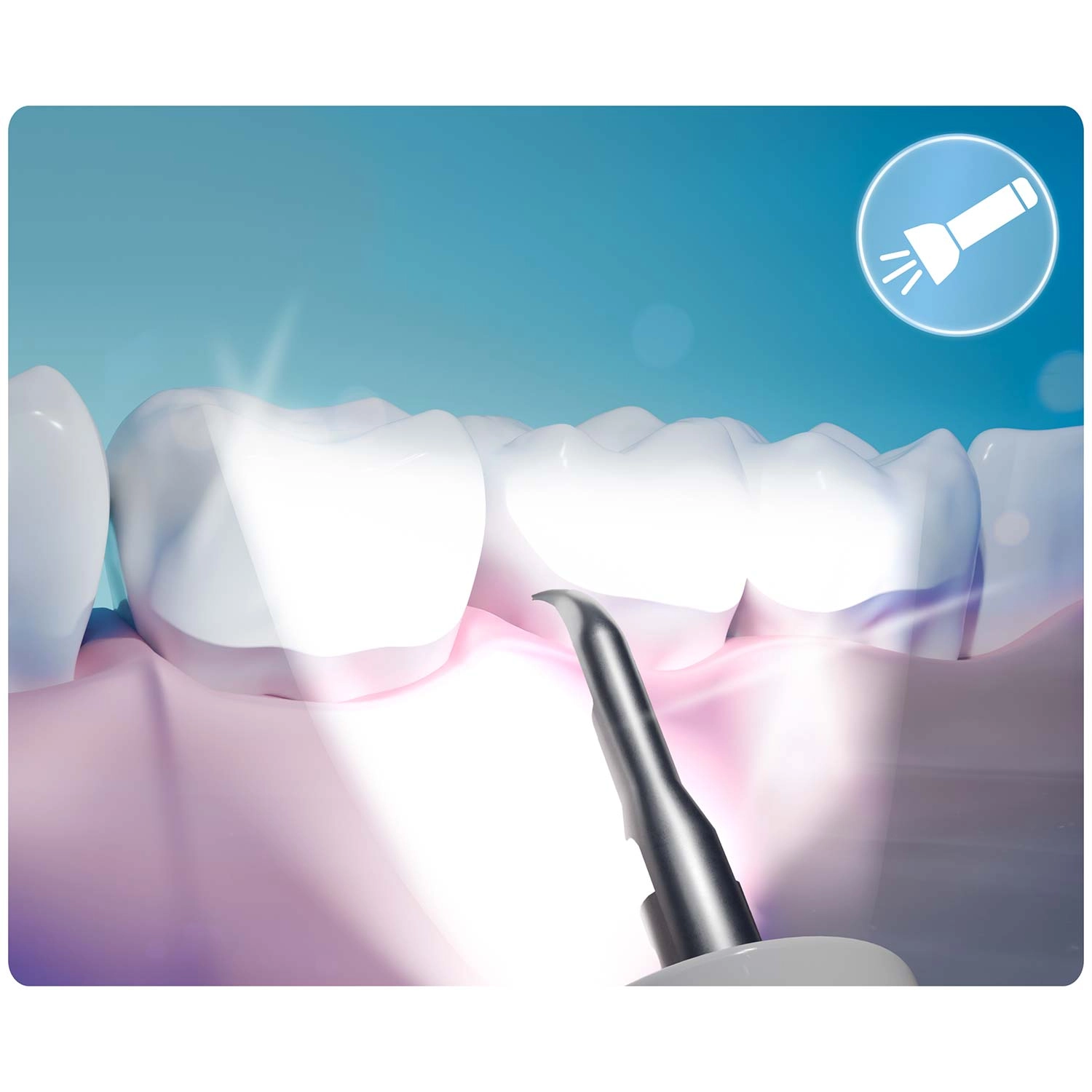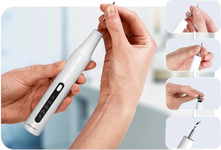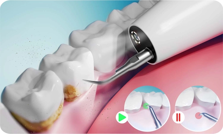Bezpečnost na prvním místě: Zařízení se automaticky zastaví při kontaktu s dásní nebo jazykem. Technologie sonického a ultrazvukového čištění je šetrná ke sklovině a dásním, ale účinná proti kameni a usazeninám. Díky IPX7 je skaler odolný vůči vodě a stříkající vodě, LED světlo zpřesňuje práci a USB‑C nabíjení usnadňuje každodenní používání.