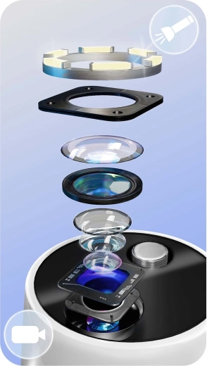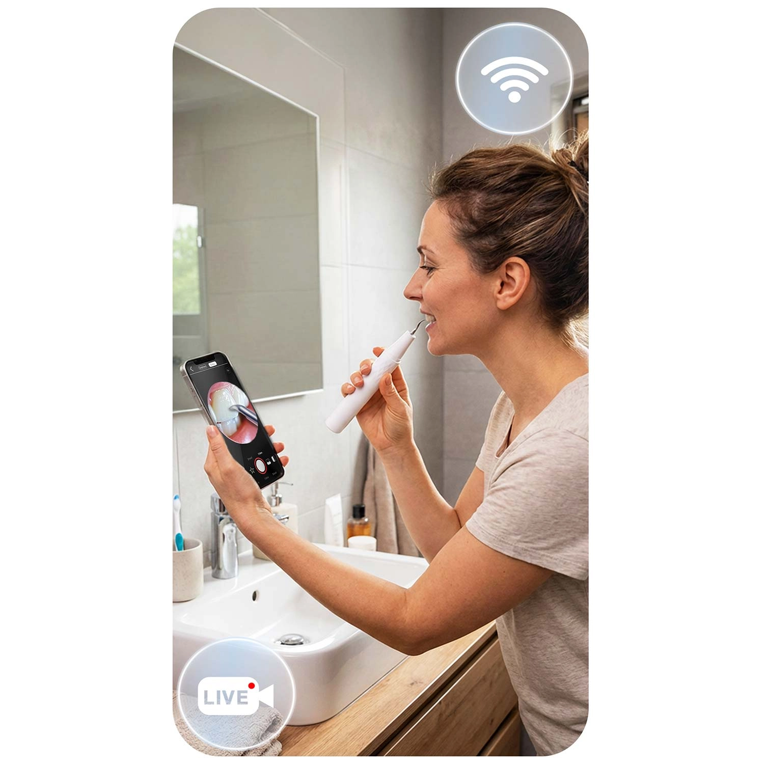 Vidíte, co čistíte – naprostá kontrola a přesnost. Integrovaná kamera 2 Mpx s LED diodami přenáší obraz v reálném čase do mobilní aplikace. Snadno tak identifikujete kámen, pigmentace i těžko dostupná místa a odstraníte pouze to, co je potřeba – bez zbytečného podráždění a hádání.