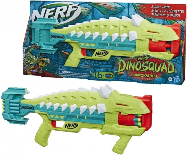 Vstupte do akce s dětským blasterem NERF DINOSQUAD ARMORSTRIKE, inspirovaným ankylosaurem. Nabízí otočný bubínek na 8 šipek, v balení najdete 16 šipek NERF Elite pro hraní bez přestávek a držáky šipek na těle blasteru pro rychlé přebití. Skvělý pro venkovní zábavu, bezpečnou akci a dobrodružství s dinosaury pro děti od 8 let.