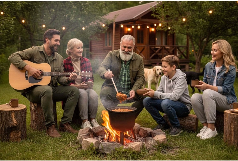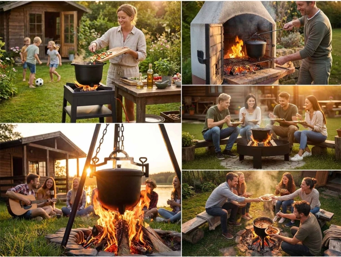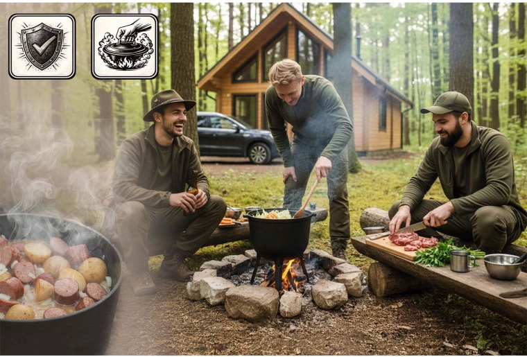 Součástí je sada praktických receptů – od guláše a „špíčků“ v kotlíku až po syté zimní polévky. Začněte hned a užijte si společné vaření u ohně.