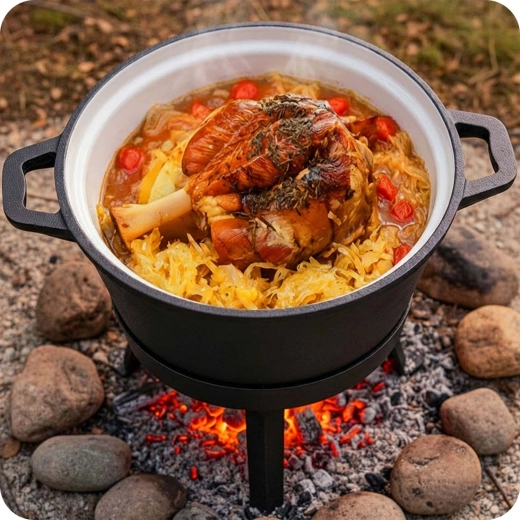 Jako bonus získáte sbírku 8 ověřených receptů navržených přímo pro kotlík – od maďarského guláše po poctivou „pečínku z jednoho hrnce“. Připravte si teplé jídlo, které spojuje generace, a vytvořte si vzpomínky u ohně.