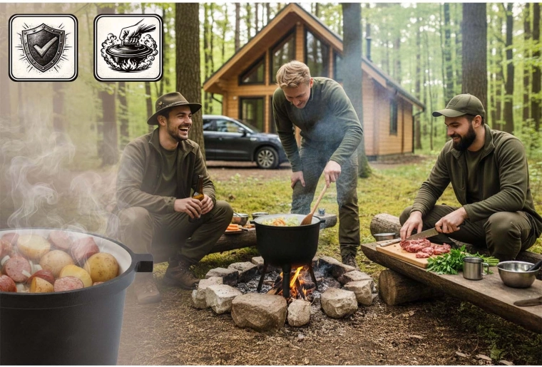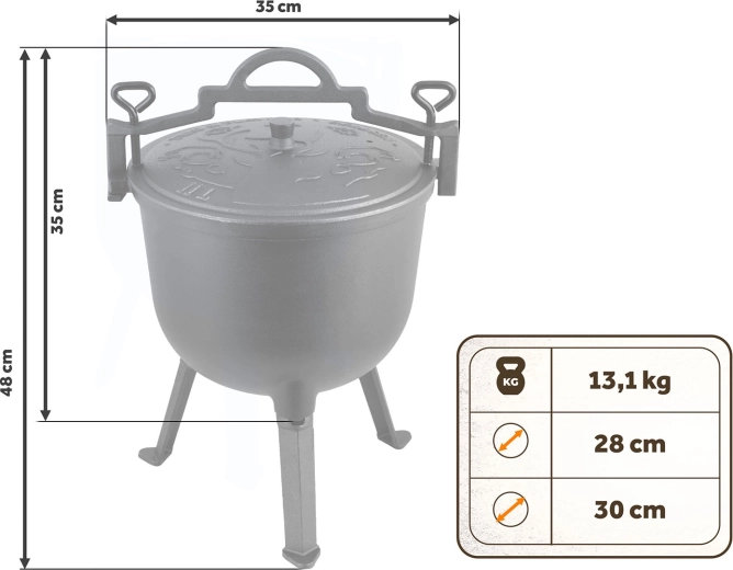 Silné stěny z kvalitní litiny akumulují teplo a rozvádějí ho rovnoměrně od dna po víko. Pokrmy se dusí pomalu a bez připálení – ideální pro guláš, bigos i hutné polévky.