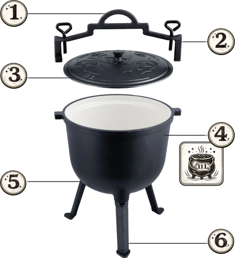 Sejmete nožky a vaříte na plynu, nebo necháte kotlík na nohách či zavěsíte nad ohništěm. Jedno náčiní pro kempování, zahradu i domácí kuchařské výzvy.