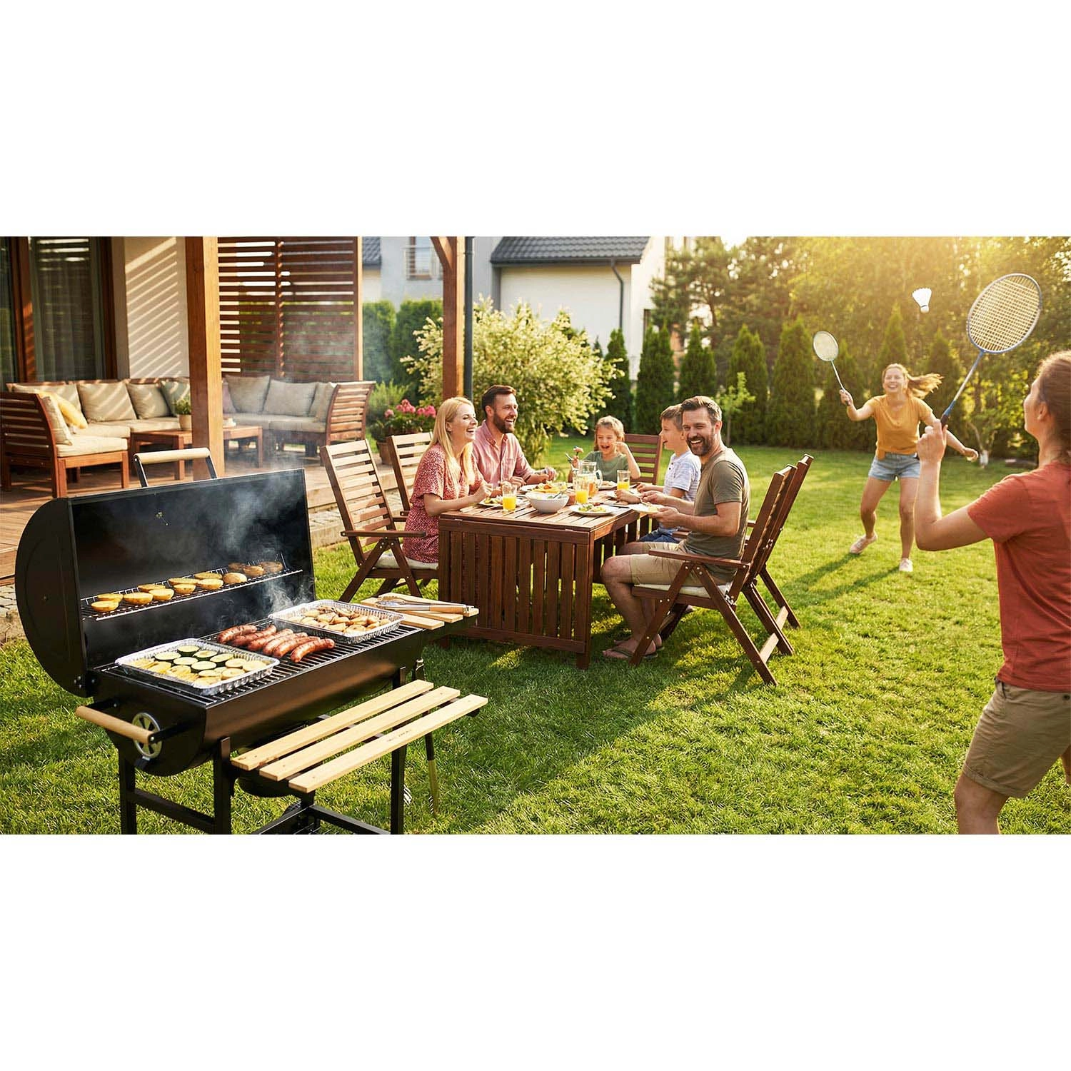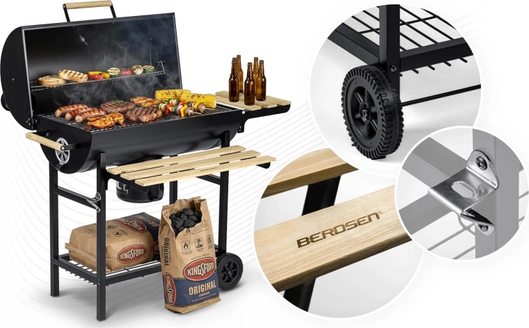 Zahradní gril BERDSEN v barelovém provedení je ideální pro rodinné obědy i větší setkání s přáteli. Prostorný rošt zajistí dostatek místa pro maso, ryby i zeleninu, zatímco komín a integrovaný teploměr umožní udržet stabilní teplotu pro šťavnaté a křupavé výsledky. Dřevěná madla zůstávají při provozu chladná pro bezpečnou manipulaci.