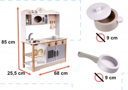 Dětská Dřevěná Kuchyně Lulilo Kuketo přináší nekonečné možnosti zábavy a rozvoje pro vaše dítě. Tato kuchyňka má realistické funkce, včetně dřezu s kohoutkem, sporáku, mikrovlnky, a úložného prostoru v podobě poliček a skříněk. Rozměry kuchyně jsou ideální pro malé děti, což umožňuje snadný přístup ke všem prvkům hračky.