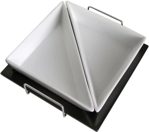 - Stylový design: trojúhelníkové misky na elegantním podnose