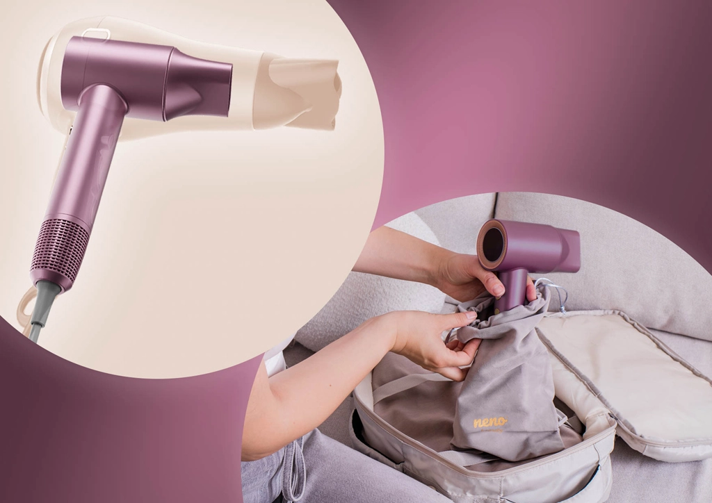 Pro přesné tvarování je k dispozici magnetická koncentrační tryska, odnímatelný kryt filtru usnadní čištění a prodlouží životnost. Kompaktní a lehký design je ideální na doma i na cesty – včetně elegantního cestovního pouzdra. Fén si navíc pamatuje poslední zvolenou teplotu díky funkci paměti.