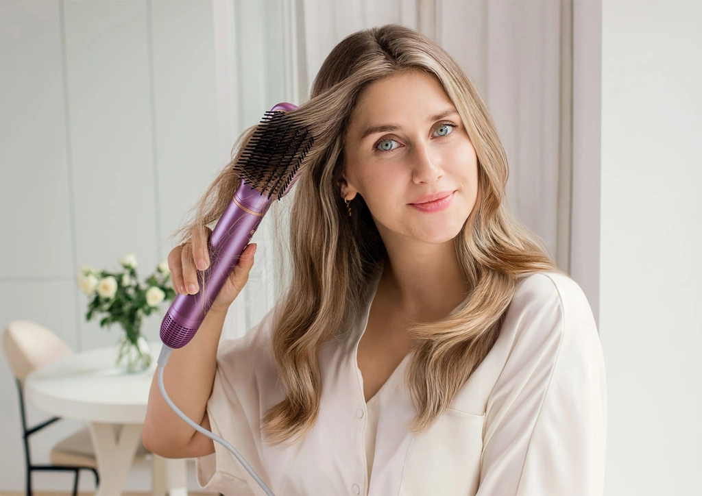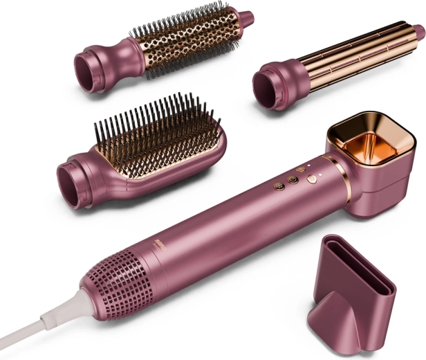 Vyměnitelné nástavce pokryjí kompletní rutinu – od rychlého sušení přes vyhlazení a zvětšení objemu po přirozené vlny a lokny. Jedno tělo, pět možností.