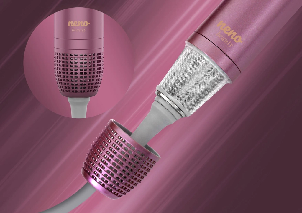 Neno Beauty Vio je univerzální řešení pro každodenní styling. Pět vyměnitelných nástavců pokryje vše od expresního sušení přes uhlazení po objem a jemné lokny. Ionizační technologie uvolňuje až 800 milionů negativních iontů, snižuje statickou elektřinu a zanechává vlasy hebké, lesklé a poddajné. Tichý provoz (cca 63 dB) a paměť posledního nastavení zvyšují komfort při používání.