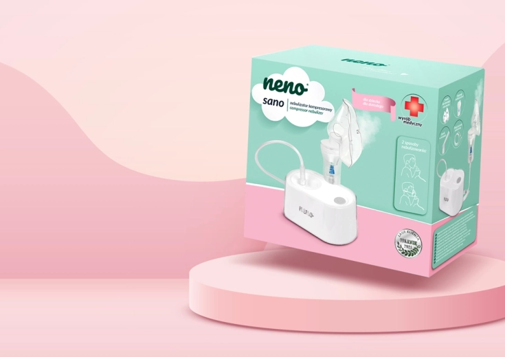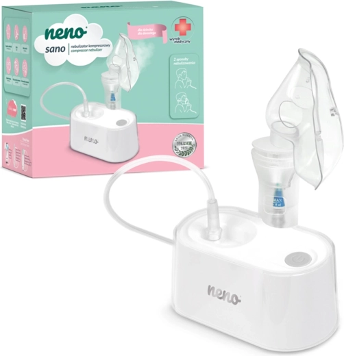 Kompresorový inhalátor Neno Sano převádí tekuté léčivo na jemný aerosol s průměrnou velikostí částic cca 5 μm a vdechovatelnou frakcí až 76 %, což podporuje účinné zacílení do dýchacích cest. Díky dvěma typům podání – přes masku nebo náustek – se snadno přizpůsobí potřebám dětí i dospělých.