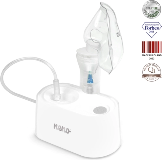 Zajistěte si každodenní úlevu při dýchání s kompaktním kompresorovým inhalátorem Neno Sano. Nabízí vysokou účinnost rozprašování, tichý provoz 52 dB, dvě masky pro děti i dospělé a jednoduché ovládání jedním tlačítkem. Díky dlouhé hadičce 150 cm, stabilní základně s 5 nožičkami a velké nádobce na léčivo 8 ml je ideální pro domácí inhalaci při nachlazení, rýmě, zánětech dutin a astmatu.