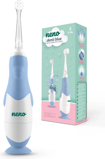 Neno Denti je šetrný elektrický kartáček pro nejmenší, vhodný už od 3 měsíců. Ergonomické tělo ve tvaru tučňáka motivuje děti k pravidelnému čištění, zatímco kompaktní hlavice s měkkými štětinami jemně pečuje o zoubky i citlivé dásně. Integrované LED světlo zpřehlední čištění a promění každodenní rituál ve zábavu.