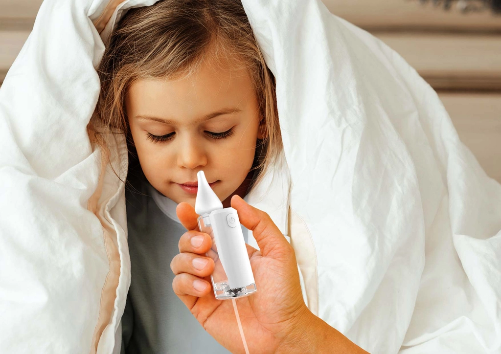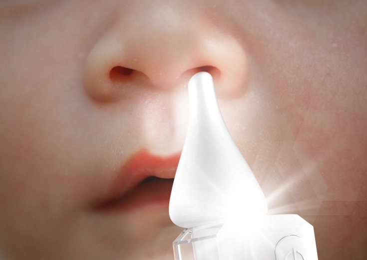 Součástí jsou tři ergonomické silikonové nástavce navržené podle vývoje dětského nosu. Pro klidné čištění poslouží dvě melodie a bílý šum, zatímco LED osvětlení zlepší viditelnost při péči ve tmě. Praktická samostatná nádoba na hlen, snadno omyvatelné díly a přibalené kartáčky výrazně zjednodušují hygienu.