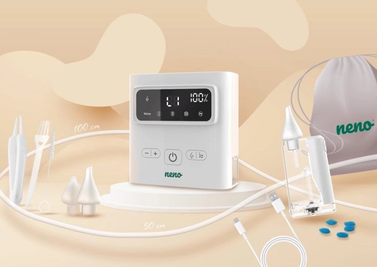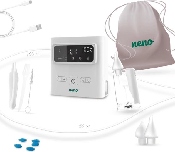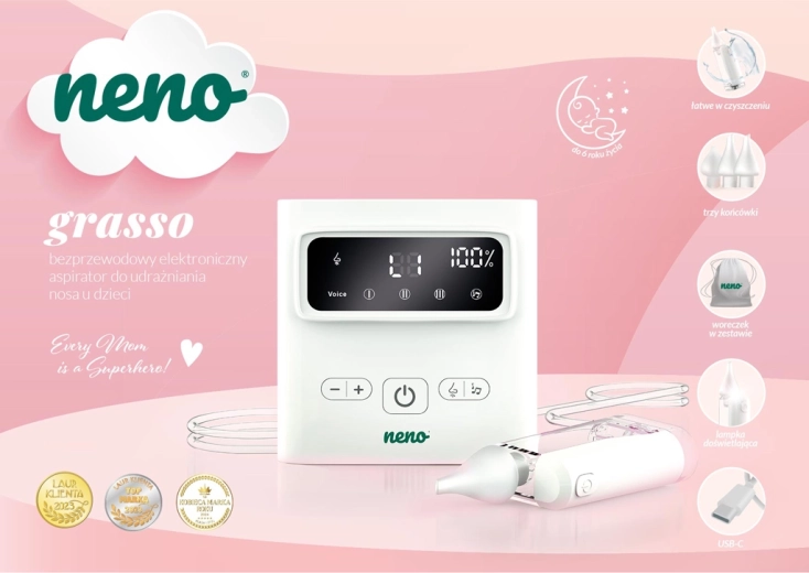 Díky bezdrátovému provozu, USB‑C nabíjení a kompaktním rozměrům je Neno Grasso ideální i na cesty. V balení najdete kompletní příslušenství včetně ochranného pouzdra, hadiček, filtrů a čisticích pomůcek – vše, co potřebujete pro bezpečné a pohodlné použití od narození až do 6 let.