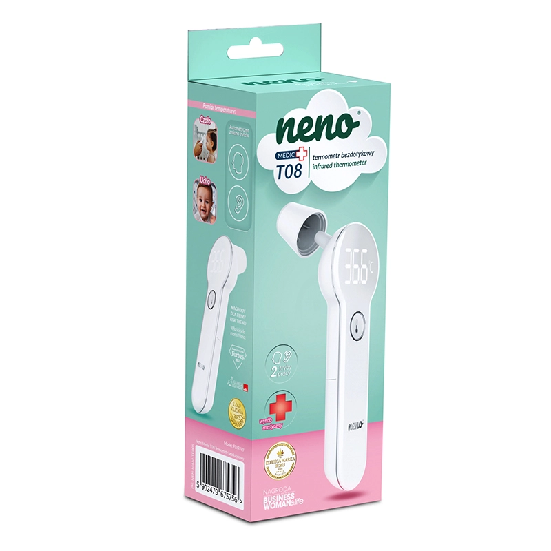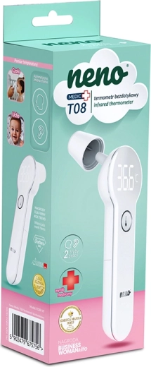 NENO Medic T08 je moderní bezkontaktní teploměr navržený pro bezpečné a hygienické měření bez probouzení spících dětí. Využívá přesnou infračervenou technologii, která poskytne výsledek za 1 sekundu s přesností ±0,2 °C. Díky velkému podsvícenému LED displeji snadno přečtete hodnotu i v noci.