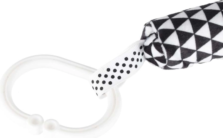 Praktický klip/kroužek umožní rychlé připnutí k madlu kočárku, autosedačky nebo k okraji postýlky. Hračka tak zůstane vždy po ruce.