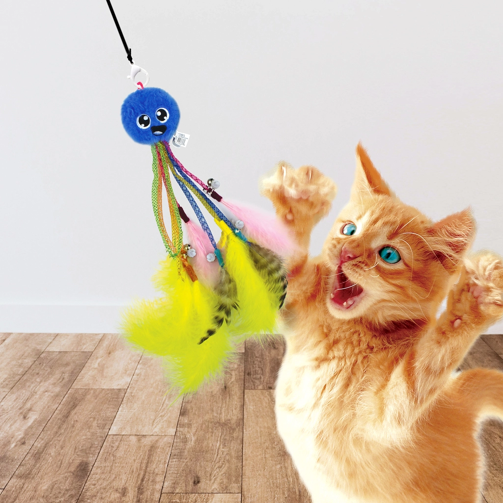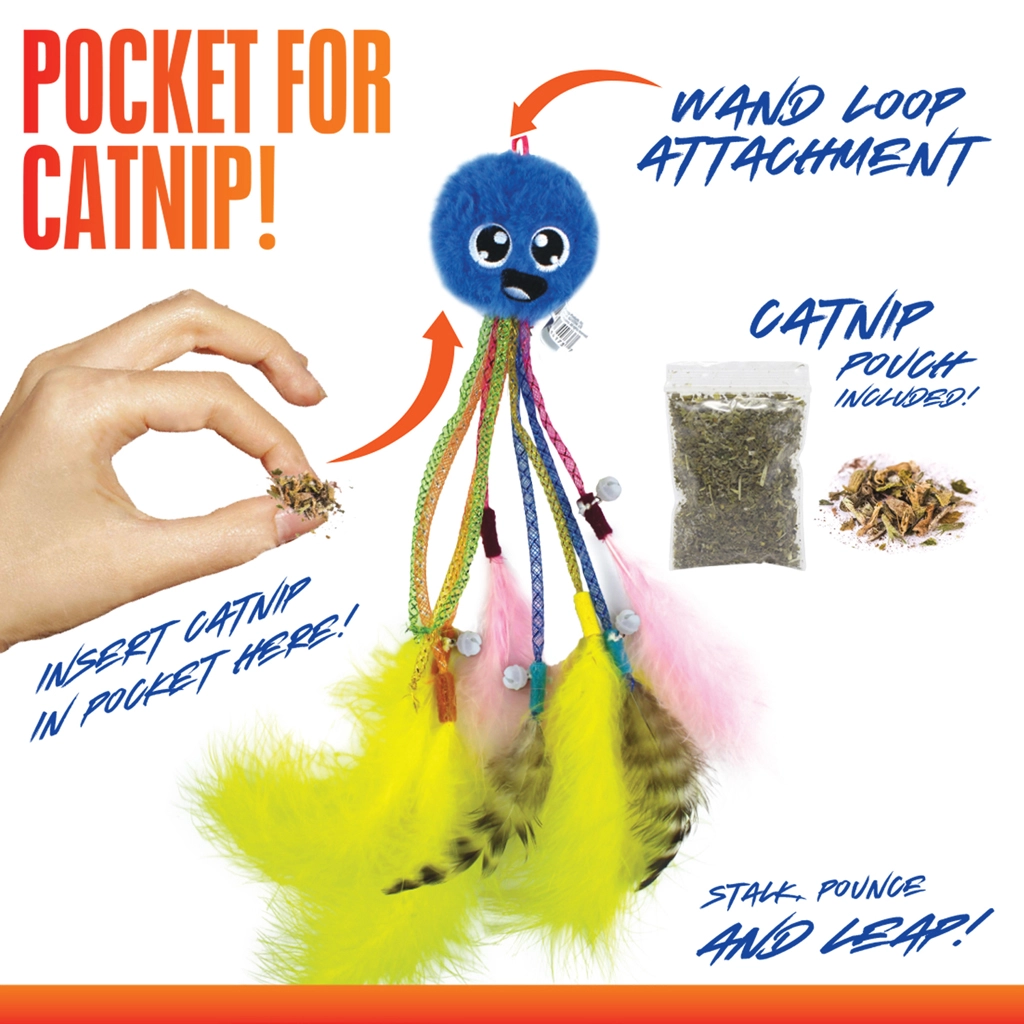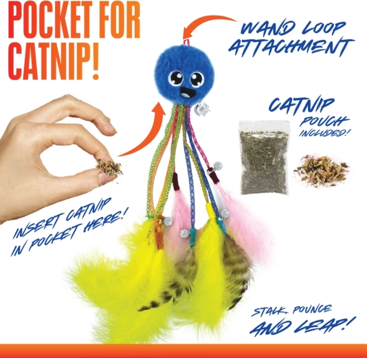 Pružné „nohy“ a lehké prvky se při pohybu vlní a třepotají, což napodobuje chování kořisti a motivuje kočku k pronásledování, skokům a rychlým výpadům.