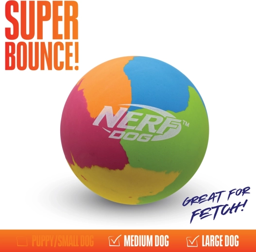 Zábava pro aktivní psy s míčkem NERF DOG Super Bounce o průměru 9,5 cm. Odolná guma s vysokým odskokem zajistí dynamické a nepředvídatelné odrazy, které psa motivují k běhu a aportování. Jasné barvy zvyšují viditelnost na trávě i v parku a snadno omyvatelný povrch usnadňuje údržbu.