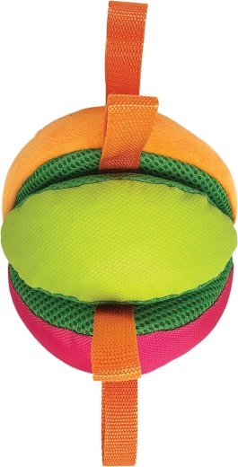 Nylonová poutka po obvodu míčku umožňují pohodlné chycení, házení i přetahování – skvělé pro společnou hru a trénink aportu.
