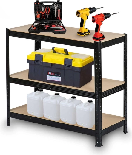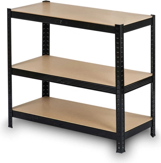 Robustní skladový regál HUMBERG v elegantní černé barvě je navržen pro bezpečné a přehledné uložení nářadí, boxů a materiálu. Zesílené profily (0,7 mm) a pevné MDF police (5 mm) zaručují vysokou nosnost až 150 kg na polici při rovnoměrném rozložení. Zaoblené hrany zvyšují bezpečnost při manipulaci a plastové koncovky chrání podlahu.