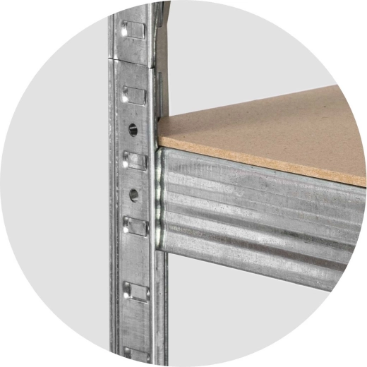 Kompaktní, ale mimořádně prostorný regál Humberg efektivně využije každý metr místa. Pět pevných MDF polic unese až 625 kg celkem (při rovnoměrném rozložení), zatímco pozinkovaný ocelový rám zajistí dlouhou životnost a odolnost proti korozi. Zaoblené hrany a plastové koncovky nohou zvyšují bezpečnost a chrání podlahu před poškrábáním.