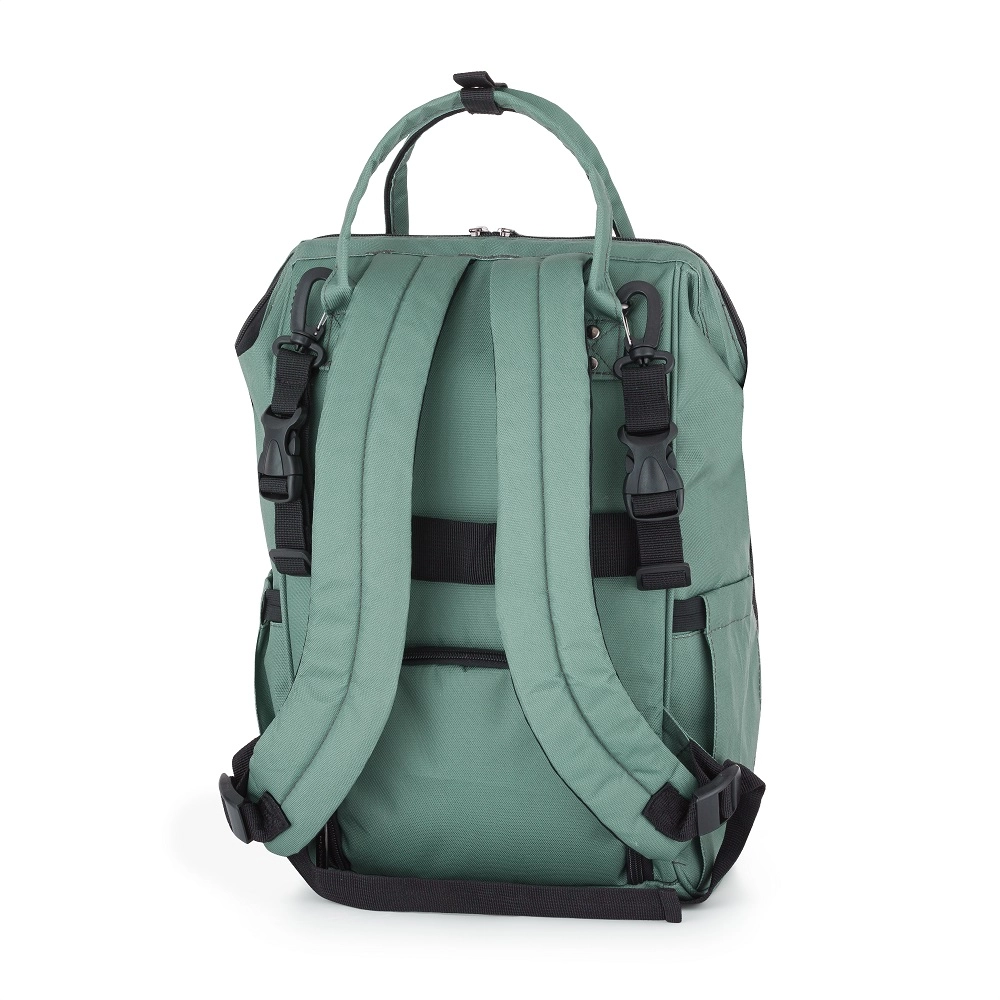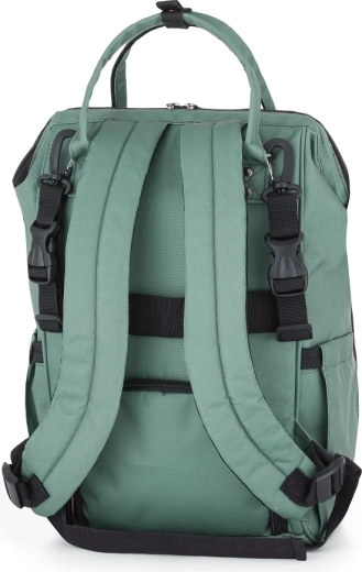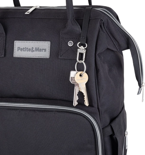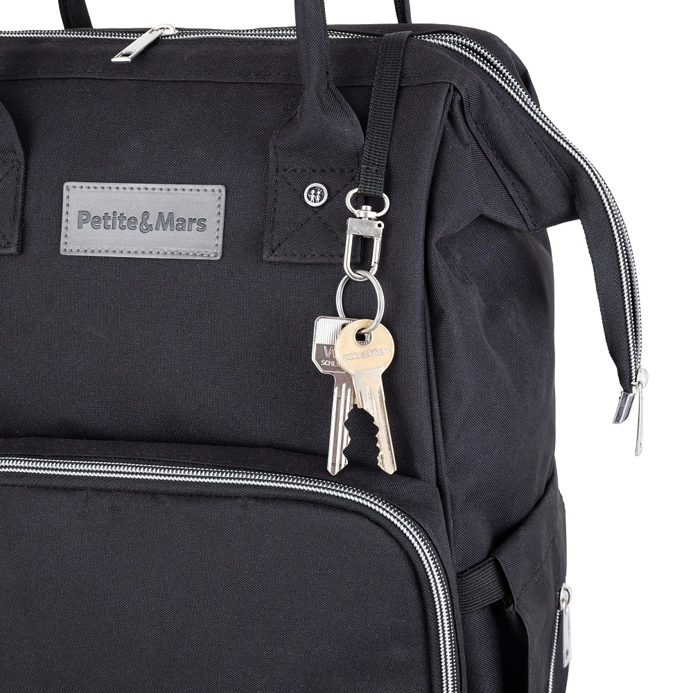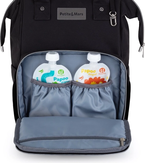 Promyšlené členění nabídne 11 snadno přístupných kapes, včetně 2 termokapes pro udržení teploty lahví, vodotěsné kapsy na mokré oblečení či utěrky, vnější kapsy na lahvičku a vnější kapsy na vlhčené ubrousky. Nechybí šňůrka na klíče, zadní zipový vstup pro rychlý přístup a popruh pro nasunutí na madlo kufru na cesty.