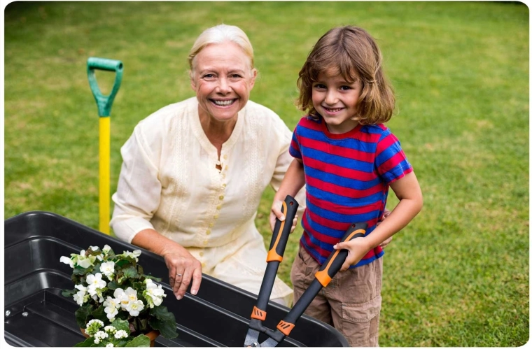 Vyklápěcí korba zrychlí práci na zahradě – zeminu, listí či mulč vyprázdníte přesně tam, kde je potřeba.