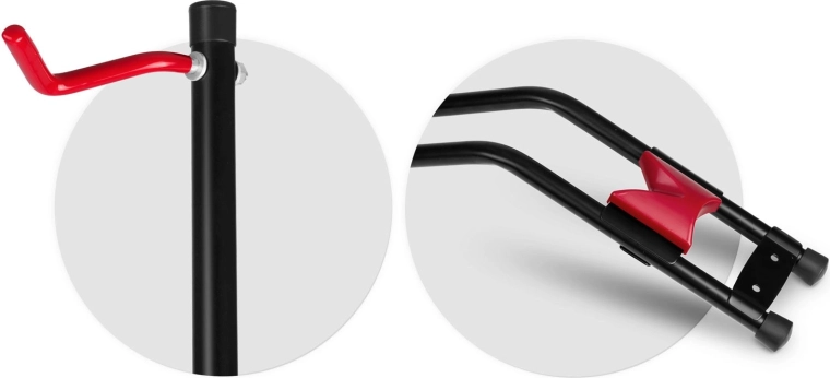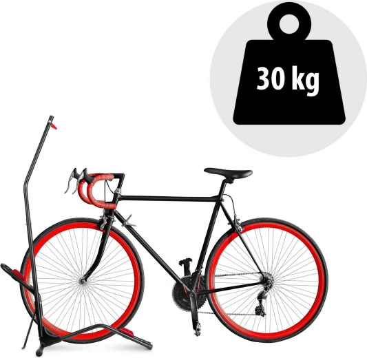Stojan podporuje dvě polohy – pionovou i horizontální – takže si zvolíte nejpohodlnější nastavení pro servisní práce, mazání řetězu či seřízení brzd. S maximální nosností 30 kg bezpečně udrží i těžší kola, a to bez rizika převrácení.