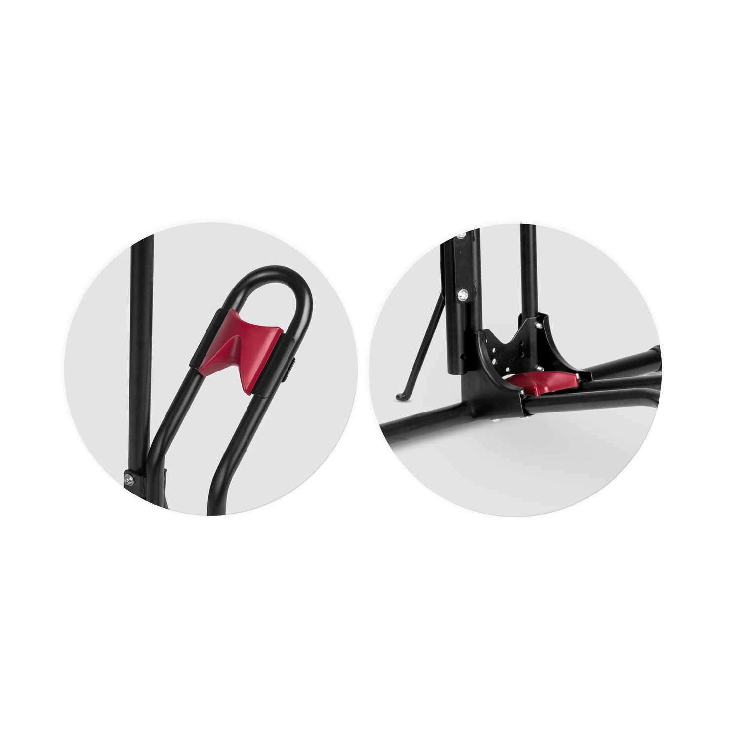 Stojan na kolo HUMBREG MB1 je spolehlivý pomocník pro přípravu kola na jízdu, čištění i drobný servis. Díky robustnímu ocelovému rámu s práškovým lakem poskytuje vysokou stabilitu a odolnost proti poškrábání a korozi. Nastavitelná výška a rozteč háků umožní přesně přizpůsobit držení různým typům a velikostem kol.